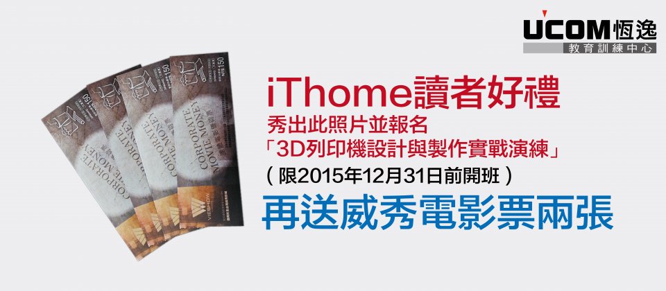 Ithome讀者好禮:秀出iThome讀者好禮照片,報名恆逸「3D列印機設計與製作實戰演練」,再送您兩張威秀電影票