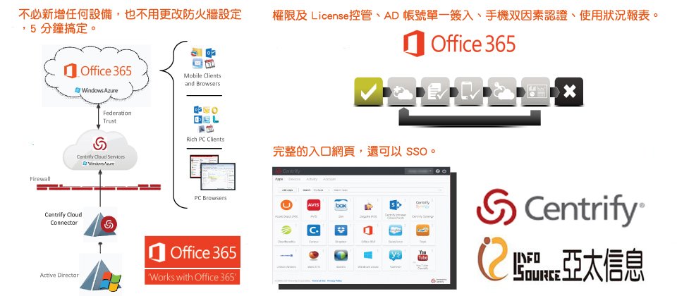 請參考 Centrify for Office 365 eDM (http://www.infosource.com.tw/eDM/Centrify_DM10410/Centrify_DM10410.htm)