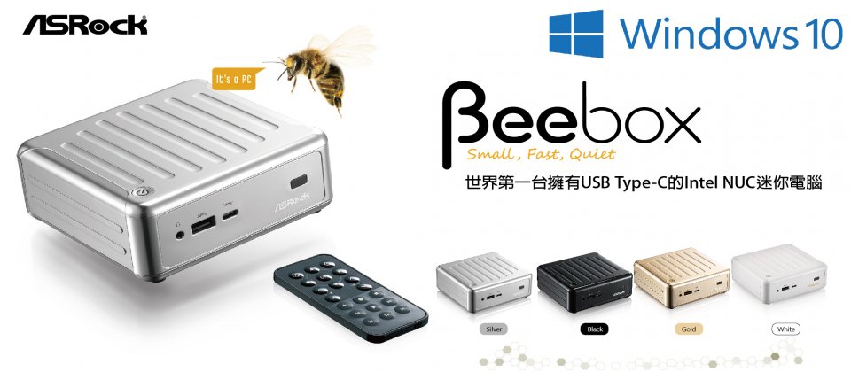 2015年10月22日,台灣台北 — 精緻小巧外型、支援三螢幕與 4K 影片、雙通道記憶體,以及搭載了前置 USB Type-C的華擎 NUC 迷你電腦「Beebox」持續發燒!隨著 Windows 10 上市,Beebox 也因應推出內建「Windows 10作業系統」、「Intel N3150 2.08 GHz 四核心處理器」的版本,還有新色「閃耀銀」可供選擇!同時沒有犧牲任何擴充能力,持續保有mSATA SSD 以及最高 2TB 的2.5吋硬碟擴充空間!將小主機的效能再次向上推升!