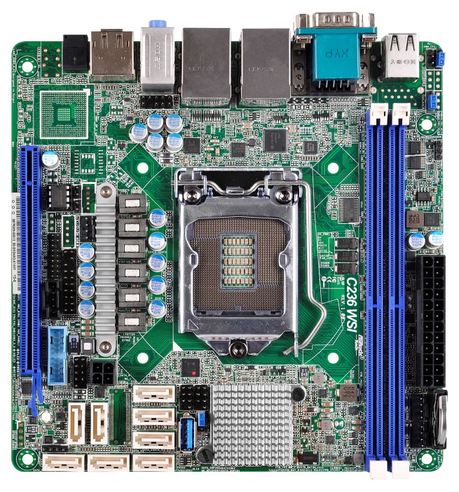 初次登場C236 WSI,mini-ITX小板規格可支持8個SATA3接口,充分發揮儲存密度,又支援1個PCIe插槽,搭配Skylake處理器,靈活適用於可大可小的各種環境,如微型工作站、堆疊式渲染系統或高階NAS等等。