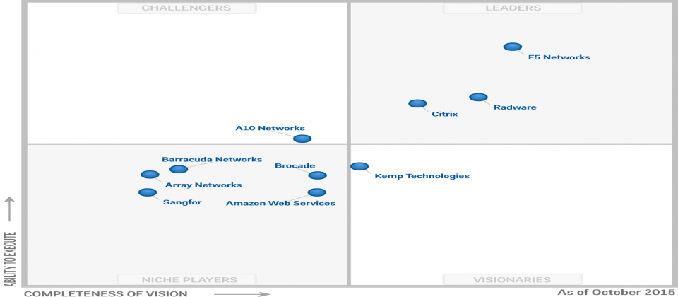 1 Gartner, Inc. "Magic Quadrant for Application Delivery Controllers," Andrew Lerner, Mark Fabbi, Danilo Ciscato, Joe Skorupa, 6 October 2015