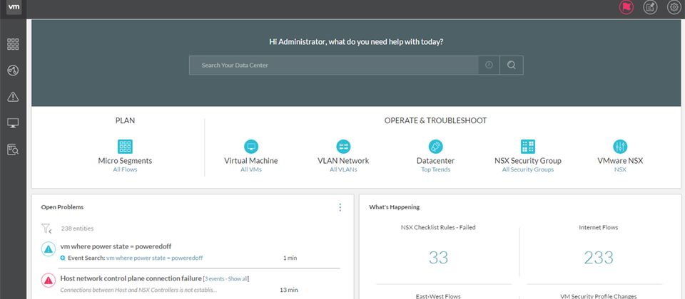 在VMware的產品線當中,先前就有IT維運管理系統vRealize Operations,以及事件管理系統vRealize Log Insight,可提供管理與監控軟體定義資料中心環境的功能,而到了2016年6月,他們宣布併購Arkin Net公司之後,取得了專供VMware網路虛擬化平臺NSX所用的產品,隨即於8月推出vRealize Network Insight(vRNI)3.0,能夠針對VMware的軟體定義網路環境,提供更透明的運作狀態,並且運用微分段的規畫(Micro-Segmentation Planning),達到快速部署的效果,用戶還可以使用自然語言搜尋與前後文脈絡式分析,來查詢相關記錄。
