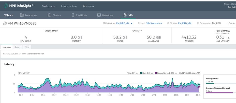 HPE在2018年11月推出的InfoSight Cross Stack Analytics,目前是針對3PAR與Nimble這兩大儲存陣列產品線提供的功能,能夠橫跨不同技術平臺,察看儲存、網路、主機端的處理器與記憶體等環節的資源。
