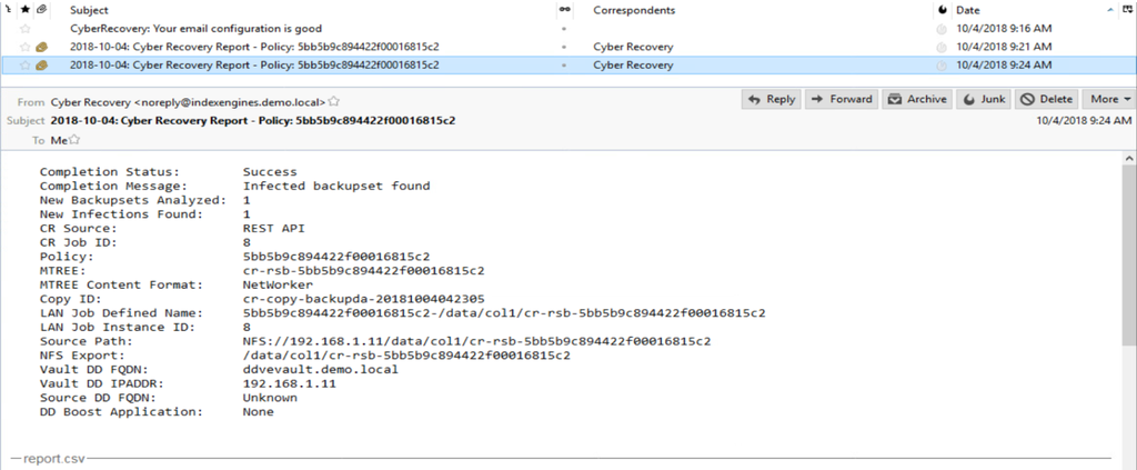 Dell EMC Cyber Recovery本身也提供了新的REST API自動化框架,能夠整合其他用於安全分析的套裝軟體,像是Index Engines公司的CyberSense,而能套用40種啟發式偵測技術,判斷是否出現受到入侵的跡象。