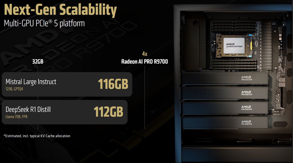 若需要更大運算效能,Radeon AI Pro R9700可擴充執行規模,用戶能以此組建配備多個GPU的系統組態,拓展記憶體與運算容量,供大型模型與平行處理的任務使用,能承擔複雜的模擬、即時著色或是同時運作的AI工作負載。