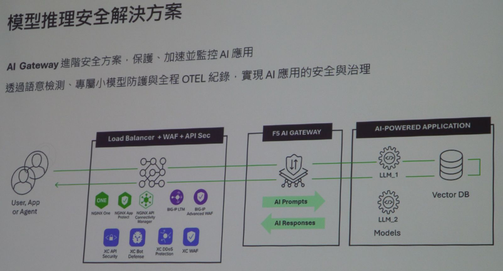 關於F5 AI Gateway在臺灣市場的推廣,F5在去年11月底全國大專院校資訊行政研討會(CCDS),率先介紹相關內容,到了今年,陸續在多場活動發表專題介紹演講,像是4月臺灣資安大會、8月底數位政府高峰會,以及9月初F5 Solution Day 2025 Taipei大會。