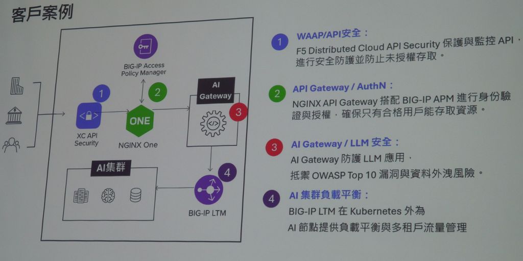 ●產品形式:可移植的微服務架構(Helm Chart),涵蓋Nginx Plus、Big-IP Next LTM、Distributed Cloud App Stack,能在任何Kubernetes環境部署AI應用