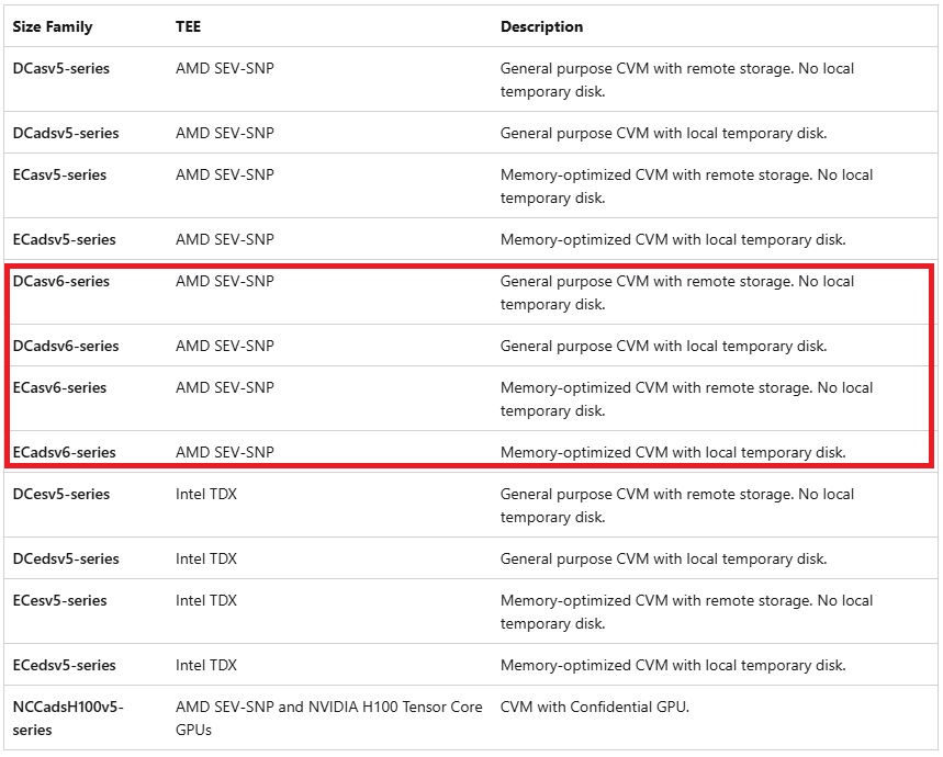 去年11月舉行的Ignite年度用戶大會,微軟宣布增設兩個支援機密運算的虛擬機器(Confidential Virtual Machines,CVM):鎖定一般用途的DCasv6系列與DCadsv6系列,單臺虛擬機器的記憶體容量最大為384 GiB,以及專攻記憶體密集工作負載的ECasv6系列與ECadsv6,單臺虛擬機器的記憶體容量最大為672 GiB。