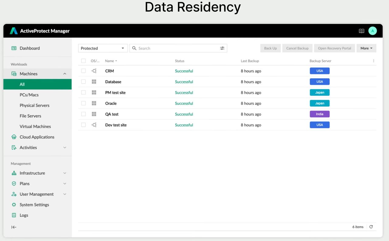 ActiveProtect能保護多種類型的系統,以虛擬化環境而言,群暉的備份應用設備支援VMware vSphere的5.0版至8.0版,微軟Windows Server Hyper-V的2016版至2022版,APM 1.1新增支援開放原始碼虛擬化平臺Proxmox Virtual Environment,能夠針對Proxmox VE 8.0至8.4,以及9.0版系統執行的Windows或Linux虛擬機器,提供備份與還原功能。