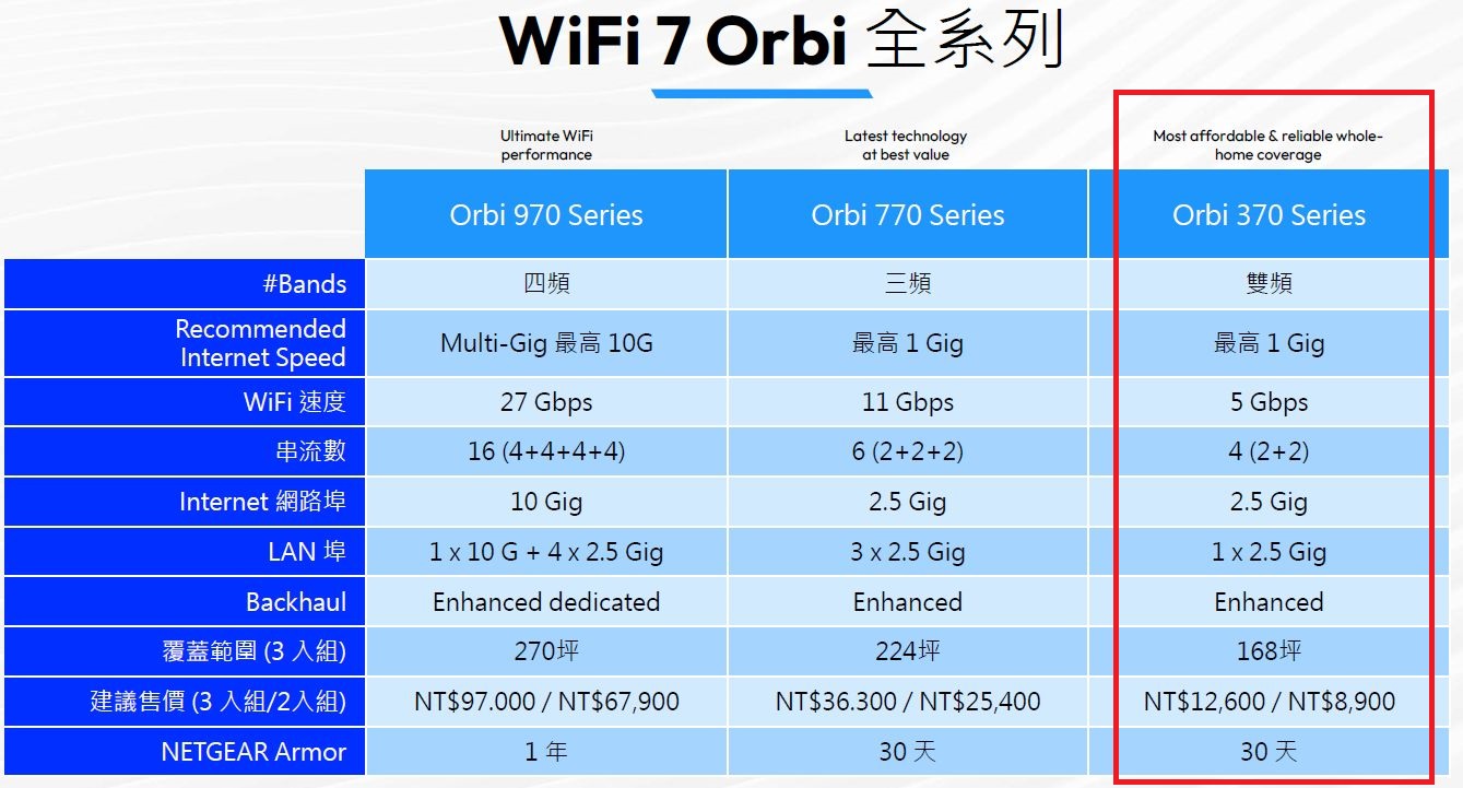 今年1月增設鎖定中高階家用市場的Orbi 870系列,7月發表入門款Orbi 370系列,10月代理商瀚錸科技宣布Orbi 370系列正式在臺上市。
