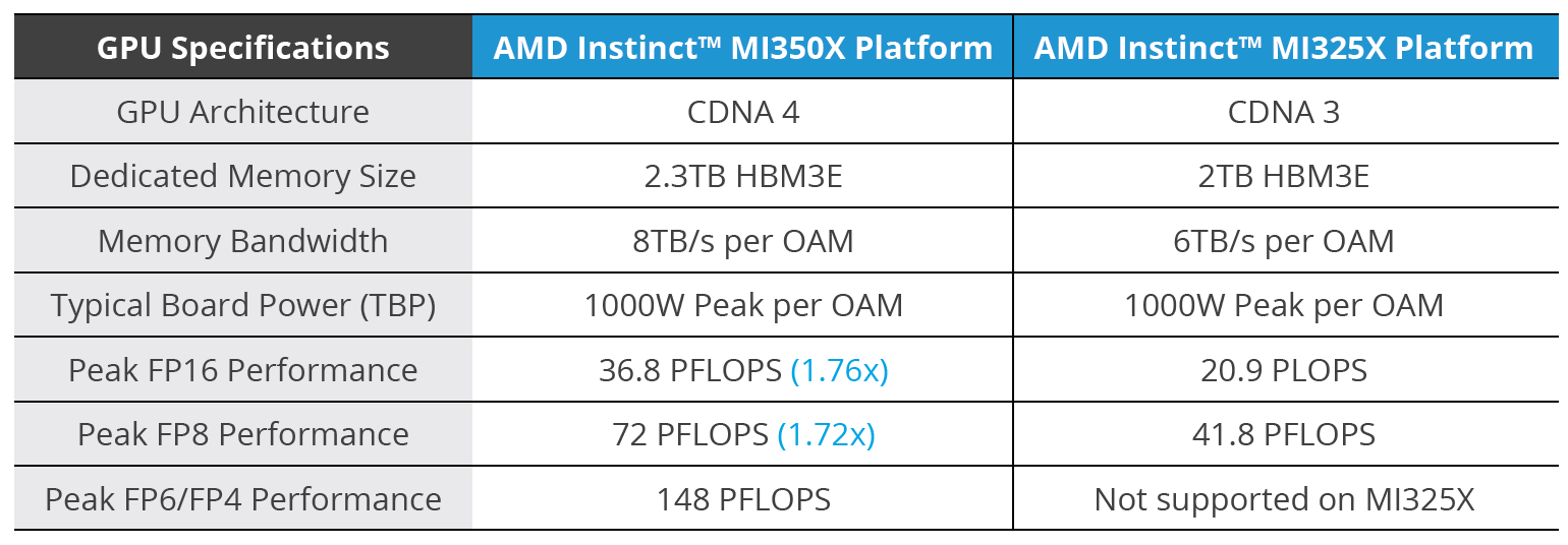 ●搭配GPU:8個AMD Instinct MI350X、MI325X