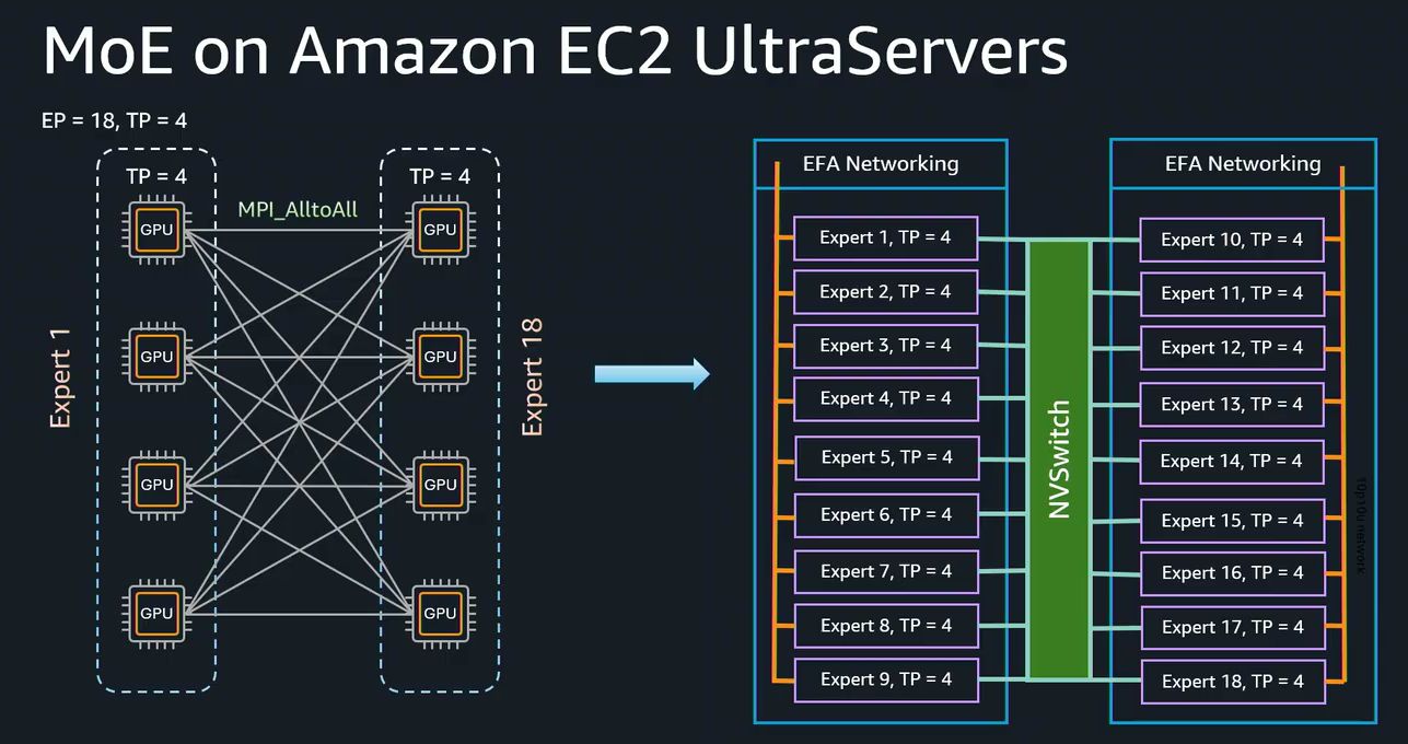 不過,這款加速運算服務,可用的GPU記憶體總容量增加50%(2,144 GB HBM3e vs. 1440 GB HBM3e),GPU提供的FP4浮點運算效能也領先50%(108 PFLOPS vs. 72 PFLOPS),GPU互連頻寬均為1,800 GB/s;而在網路頻寬方面,P6-B300同樣採用第四代EFA網路卡(EFAv4),但受益於I/O介面新支援PCIe 6.0,而能增至兩倍以上(6,400 Gbps vs. 3,200 Gbps),值得注意的是,它也額外配置專屬ENA網路卡,可提供300 Gbps的網路吞吐量。