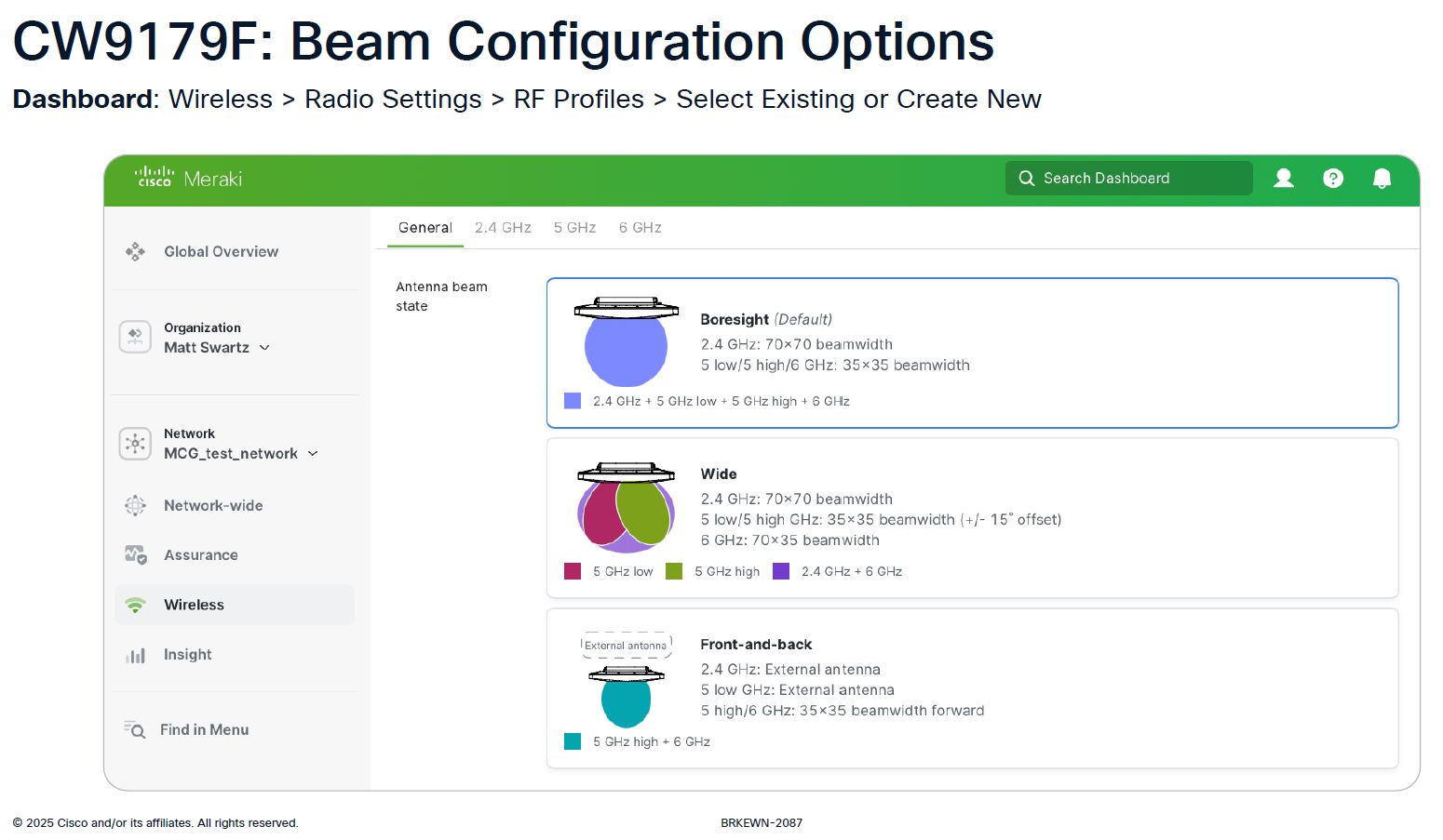在多個基地臺集中管理的功能上,CW9179F的用戶可透過多種方式操作,例如,經由設置在內部環境的無線網路控制器,像是Catalyst 9800系列的實體或虛擬設備,以及嵌入無線網路控制器、啟用SDA(SD-Access)模式的Catalyst 9000交換器,或是經由雲端服務型態的Meraki網路管理平臺,企業可橫跨網路管理與自動化系統Cisco Catalyst Center與Meraki系統的儀表板,進行統一管理,IT團隊可藉此擴展網路服務營運的規模,也能更有餘力提供更完善的使用者體驗。
