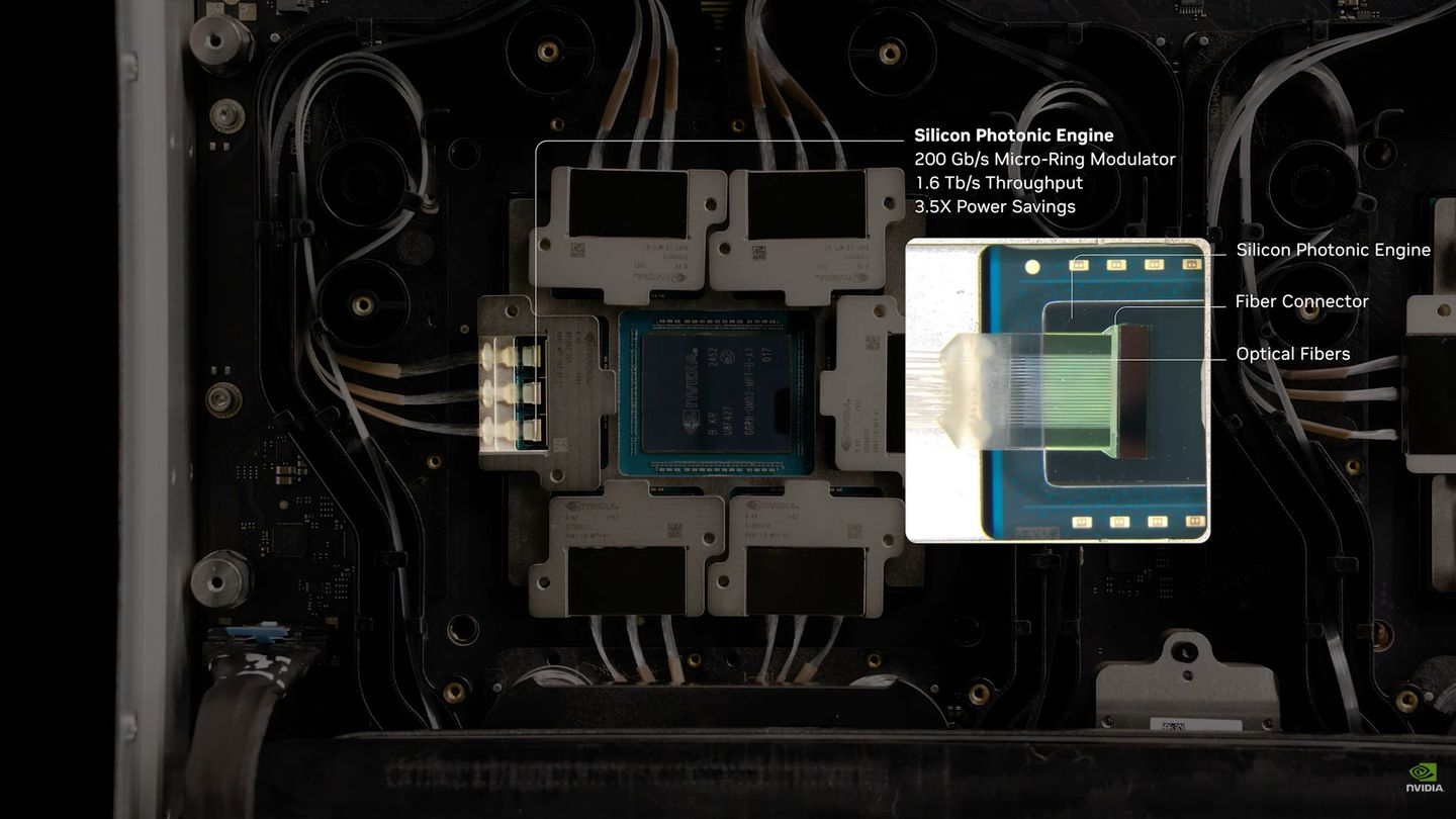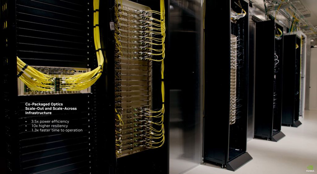 另一家是Nvidia,在3月舉行的GTC大會,針對乙太網路Spectrum-X系列與InfiniBand網路Quantum-X系列的產品線,宣布增設支援矽光子網路(Silicon Photonics Networking)的交換器設備,他們表示,這些解決方案整合的光學網路技術,每個網路埠可提供1.6 Tb/s的頻寬,相較於傳統網路交換器,僅需要低於四分之一的雷射數量(傳統網路的收發器每個都需要一或多個雷射發射器產生光信號),卻能提供3.5倍的能源使用效益、63倍的通訊信號完整度、10倍網路快速復原韌性,以及1.3倍的部署速度。