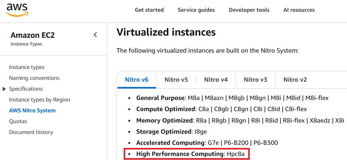 值得注意的是,Hpc8a也和近期上市的Amazon EC2執行個體一樣,均採用最新一代的AWS自研基礎架構卸載平臺Nitro System v6,可將虛擬化、儲存、網路等功能卸載至專屬加速卡,AWS強調,對比於先前推出的Hpc執行個體採用的Nitro舊世代技術,Nitro v6可提供更強大的封包處理效能,以及更低的網路存取延遲,能提供近乎裸機部署型態的系統效能,並兼顧雲端基礎架構需要的彈性、安全性與規模擴充能力。