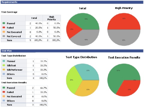 如果整合Borland CaliberRM,更可記錄每次需求變更歷史,使得每次變更連結到相關的測試計劃和缺失。當軟體的規格或功能改變時,測試人員也能追蹤和報告,降低人工作業時出錯的機會。測試主管則透過統計分析報表,典型報表包括統計比率與圓餅圖等,以專案整體角度檢視測試進度,而不是像測試人員般,只看每項的進度細節。