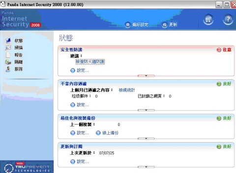 Panda Internet Security 2008(PIS)是該公司個人端產品當中,整體防護功能最齊全的一款產品。主要功能除了包括系統防毒、個人防火牆、主機型IPS、垃圾郵件過濾、家長防護網,以及新版也增加的檔案備份等元件。