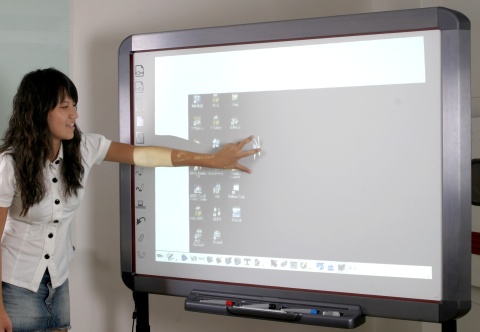 網奕資訊的互動式電子白板HaBoard HB-078,採用雙向紅外線技術,可搭配任何廠牌的電腦與投影機。使用者除了能透過附件中的3色手寫筆操控,亦可直接以手指在該面白板上觸控、書寫及繪圖。