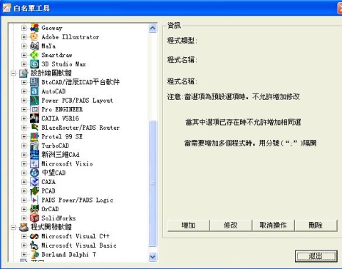 | 白名單工具可以讓管理者自行定義受管控的應用程式。 |
