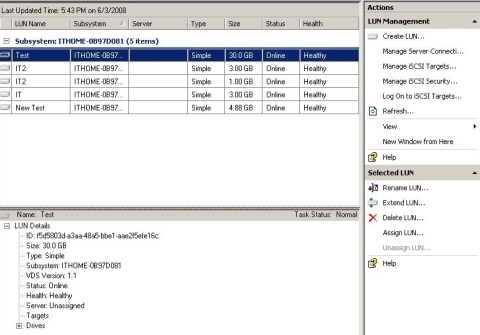 | 藉由微軟的Share and Storage Management介面,用戶可執行共享磁碟區管理,也能透過Storage Manager for SANs工具,去設定iSCSI區塊儲存組態。 |