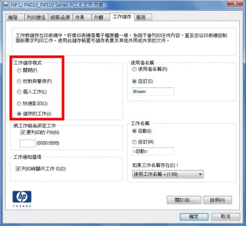 此外,這臺黑白雷射印表機也具有機密列印的功能。實際操作時,在驅動程式的列印功能內,進入「工作儲存」視窗、執行「個人工作」功能,需設定輸入4位數字密碼才能列印,取文件時,只要再透過機身上的數字鍵輸入密碼即可,不過每個列印工作需個別設定密碼;列印數量較多時,可以設定為執行「校對與暫停」功能,系統僅會列印一份,確認無誤後,再透過印表機列印其他副本;或者也可將常用的文件儲存於這臺設備的記憶體或硬碟中,並可選擇是否輸入密碼再印出,換句話說,列印某些常用文件時,可直接在印表機上選擇列印,而不需在電腦上操作,的確很方便。文⊙羅正漢