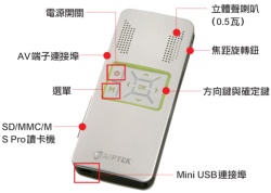 | 產品資訊 | 建議售價●14,800元ˉ原廠●天瀚科技ˉ電話●(03)567-8138ˉ網址●www.aiptek.com.tw 投影技術●LCoSˉ解析度●VGA(640×480)ˉ亮度●10流明ˉ尺寸●12.5×5.5×2.3(公釐)ˉ重量●0.16公斤ˉ投影尺寸●6~50吋ˉ投影距離●21~180公分ˉ支援檔案格式●JPEG、AVI、ASF、MP4、MP3 |