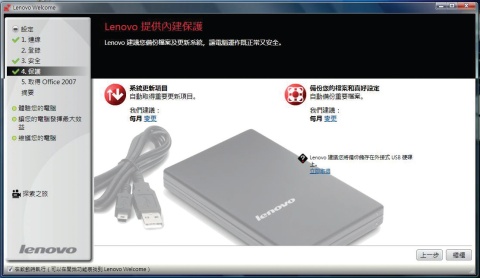 | M58內建聯想電腦皆具備的ThinkVantage系統診斷及管理軟體,也提供Step-by-Step的設定工具,可幫助非IT的人員快速備份或連線至網際網路。 |