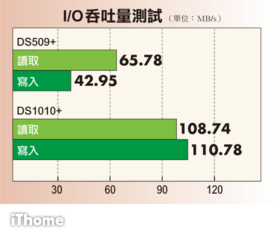 從測試結果可以明顯看出,DS1010+無論讀取還是寫入速度,都較上一代的DS509+
