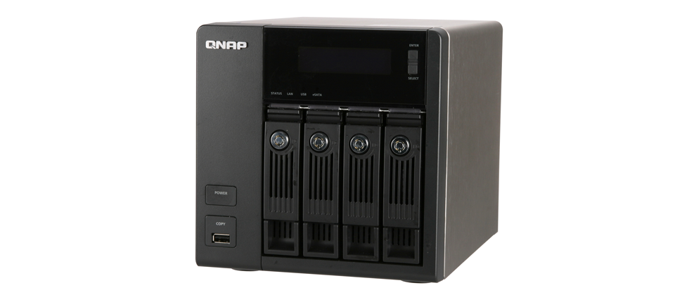 威聯通TS-459 Pro是一款4Bay桌上型NAS,採用Intel Atom D510處理器,機箱含4個3.5吋磁碟槽空間,以及兩個用於資料傳輸的GbE埠,搭配系統韌體可建立容錯、負載平衡等傳輸應用。除基本的檔案共享存取服務外,系統韌體還可透過iSCSI Target提供區塊(block)存取服務,並兼具FTP、網頁服務、列印、視訊監控、iTune伺服器等多種應用功能。