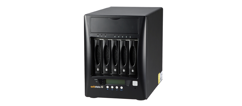 | 產品資訊 | 建議售價●39,800元 原廠●actidata 電話●(02)2507-2519 網址●www.actidata.com 尺寸●5Bay桌上型 處理器●Intel Celeron 430 1.8GHz 記憶體●1GB 儲存容量●SATA II×5,RDX×1 支援RAID層級●0/1/5/6/10/JBOD 連接埠●GbE×2,USB×2,eSATA×1 支援傳輸協定●CIFS、NFS、AFP、FTP、iSCSI |