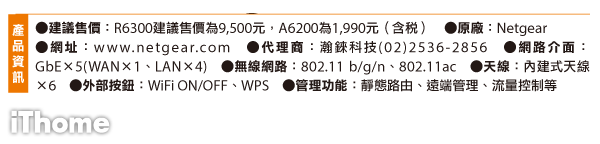 由瀚錸科技所代理的802.11ac Netgear R6300無線基地臺,內建的天線規格為3T3R,支援理論傳輸值達450+1300Mbps。