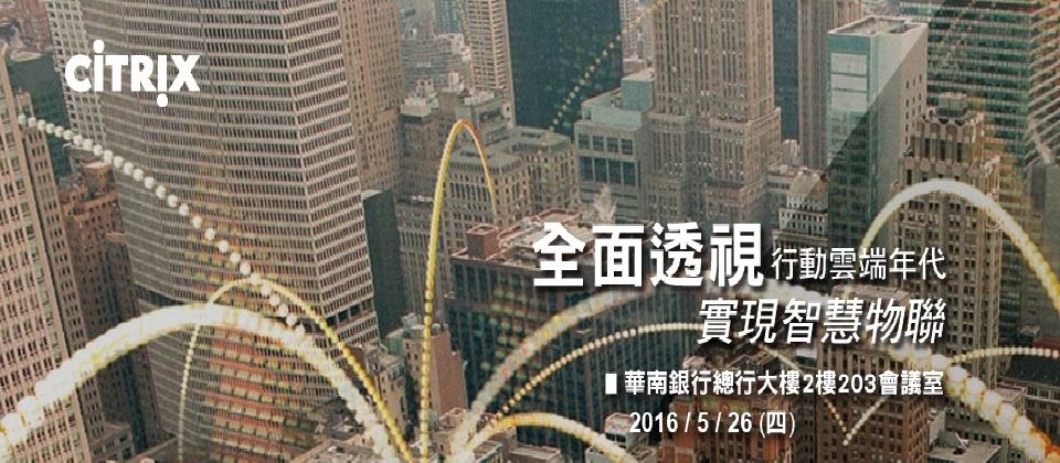 2016/5/26(四) / 時間:13:30-16:30全面透視行動雲端年代 實現智慧物聯線上報名iThome研討會台北市松仁路 123 號 2F(華南銀行總行大樓 203 會議中心)網路時代的到來,現今企業不只採用雲端服務降低IT成本,更多的應用是透過網路經營客戶關係,甚至串連實體服務或行銷活動,打造線上到線下O2O整合的全通路服務,而如何確保網路連線品質,即使遇到瞬間流量高漲的情況下,網頁也能維持順暢運作,不影響使用者的使用體驗,成為企業最重要的課題。 Citrix