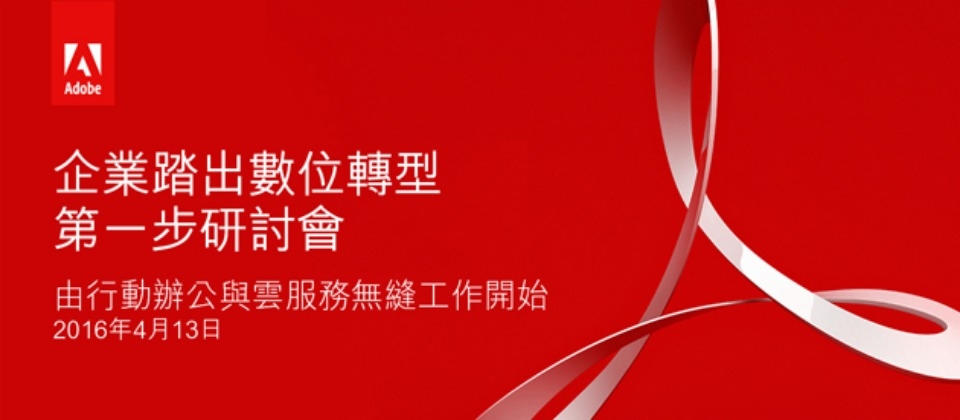 4/13 (三) 14:00~16:00Adobe:企業數位轉型第一步研討會線上報名iThome研討會參加這個關於企業數位轉型的研討會, 促進你的團隊建立、管理、操作,以及發佈關鍵的文件及資訊,例如: • 隨時隨地工作 - 完整PDF解決方案均能於電腦、行動裝置及瀏覽器自由使用。 • 擁有全面系統記錄的自動化電子簽署和批核功能。 • 處理、修訂追蹤和保護敏感資料。Adobe