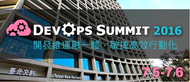 開發維運融一體.敏捷高效行動化7/5(二)-7/6(三)DevOps Summit 2016線上報名iThome研討會臺北文創大樓6樓DevOps已經是IT的新典範,7月5日~7月6日,呼應全球DevOps趨勢的臺灣DevOps 2016大會即將展開,這不只是企業IT團隊的新工作方法,更會改寫Developer和MIS的角色,要成為新世代Developer、新世代MIS,趕快來跟上DevOps的全球大趨勢。iThome