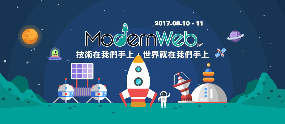 8/10(四)、8/11(五)Modern Web 2017 線上報名iThome研討會台灣大學社會科學院世界級 Web 公司,最精彩的觀點分享 Google、Slack、易寶支付、閱文集團、螞蟻金服、騰訊...來自世界各地的優秀的開發者、分享他們的技術觀點 iThome