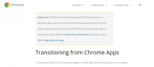 2022年中開始,Google會停止所有客戶的Chrome App支援,但不影響Chrome外掛。另外,開發商可參考Google提供的技術資源,向PWA、Web App或ChromeOS版Android轉型
