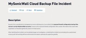 SonicWall部分用戶在MySonicWall雲端備份的防火牆設定檔遭未授權存取,內含密碼與金鑰等敏感資訊,官方已封鎖存取點並展開調查,受影響用戶須立即隔離設備並全面更換憑證