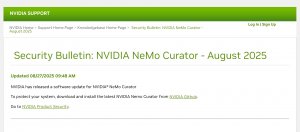 Nvidia警告NeMo Curator存在CVE-2025-23307高風險漏洞,25.07前版本皆受影響,官方已釋出修補版,建議用戶立即更新