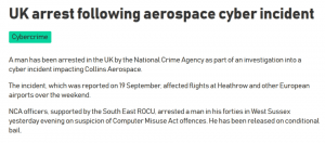 一週前歐洲多個大型機場出現登機系統運作中斷的資安事故,最近有新的消息傳出,英國國家犯罪局(NCA)宣布,他們成功逮捕一名涉案的中年男子,罪名是涉嫌違反《電腦濫用法(Computer Misuse Act)》