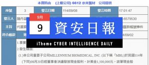 【資安日報】9月9日,歹徒冒名奈米醫材旗下投資公司發動商業郵件詐騙