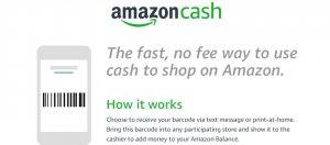 不想使用支付卡或信用卡的民眾,可利用Amazon Cash儲值服務,取得一組消費者專用的加值條碼,在合作的實體商店加值50到500美元,就可用於Amazon線上購物。