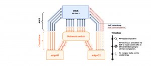 Cloudflare與AWS美東雲端區域(us-east-1)互連路徑在8月22日凌晨,因單一用戶流量暴增而飽和,造成延遲與封包遺失,雙方透過限速與路由調整於清晨排除問題