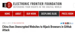 電子前線基金會:中國利用未加密網站綁架使用者瀏覽器攻擊GitHub