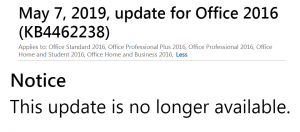 用戶在安裝5月7日釋出的Office 2016更新版(KB4462238)後,在點入Word、PowerPoint、Excel或Outlook中的超連結時,可能會發生整個Office無法運作的問題