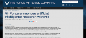 美國空軍預計每年投資約1,500萬美元與麻省理工學院推動加速AI技術的計畫,開發出國家級安全挑戰的實際AI解決方案