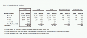 蘋果賣出7450萬支iPhone創下歷史新高,但iPad不論營收和出貨都較前一年大幅衰退,僅賣出2142萬台,較一年前的2604萬台衰退18%,營收更短少了22%,從114.7億美元減少為89.9億。。