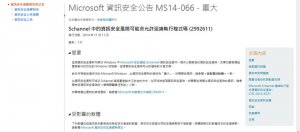 Windows SSL/TLS協定的Windows安全通道驚報有漏洞,不論是微軟個人端Windows 7,8或是伺服器端的Windows Server 2008,2012都受影響