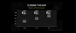 Nvidia解釋,2010年推出的第八代架構Fermi在筆電上的效能約等於桌面的40%,第九代的Kepler在筆電上的效能則提升到桌面的60%,而且首次可於筆電上提供1080p解析度的遊戲體驗,而第十代的Maxwell進一步縮小筆電與桌面的差距,讓基於該架構的晶片於筆電上可達到80%的桌面效能,同時允許遊戲解析度超越1080p。
