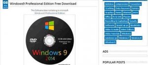 趨勢科技警告已發現有網路犯罪者假借Windows9開發者預覽版下載為藉口,誘騙使用者下載以散佈廣告程式,散佈的管道包括惡意網站、部落格、YouTube等等,請民眾提高警覺。