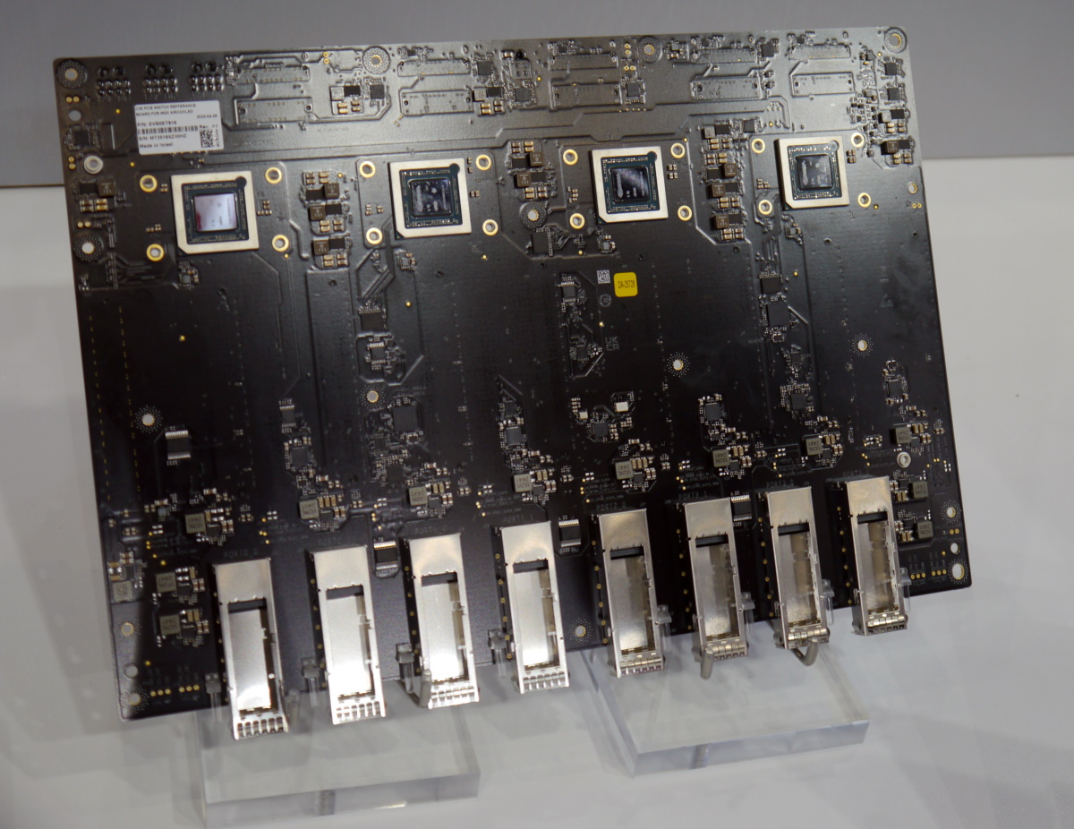 到了今年,在3月GTC大會上,Nvidia宣布旗下更多產品都將採用ConnectX-8 SuperNIC,例如:AI桌上型工作站DGX Station,以及整合式AI應用設備DGX GB300與DGX B300。5月初的HPC Admintech大會,Nvidia明確將內建PCIe 6.0交換器標示為ConnectX-8 SuperNIC主要特色;而在5月下半台北國際電腦展期間,Nvidia共同創辦人暨執行長黃仁勳的主題演講當中,也提到這款網路晶片具有新的搭配模式:最新主推的GPU伺服器平臺RTX Pro Server,不僅採用8張GPU加速卡(Nvidia RTX Pro 6000 Blackwell Server Edition),也將搭配內建PCIe 6.0交換器的ConnectX-8 SuperNIC,當時各大伺服器廠商的展示區現場,也紛紛擺出標榜採用MGX參考架構設計而成的PCIe交換器機板,吸引不少產業分析師與科技媒體注意。